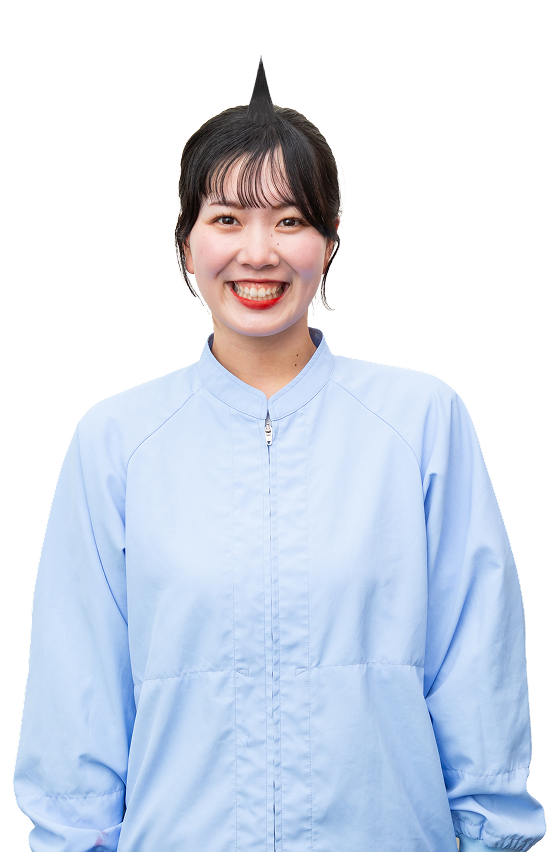 入社3年目ですが、2年目に粉砕機や顆粒機、原料計量、バスケット作りなど多くの工程を習得できたことが、自分の中で最も成長を実感した瞬間です。
